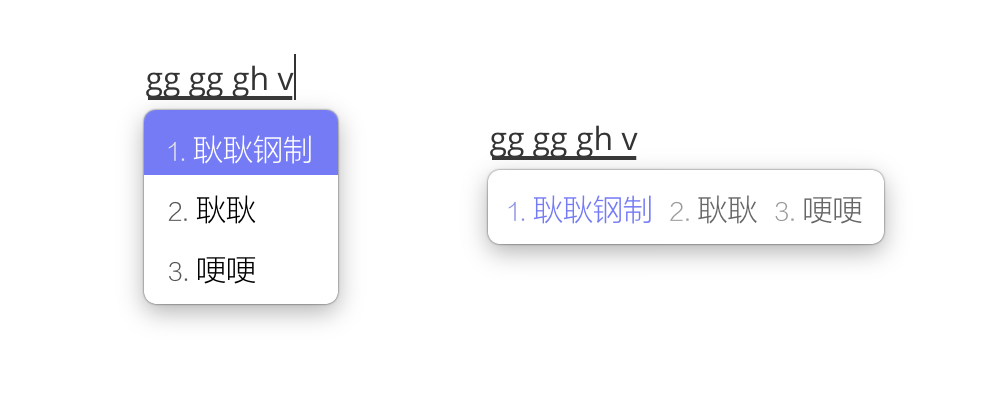 自己做了横排和竖排两个定制外观,示例如下图,左边是方案一,右边为方案二,范例文字是猫输入的。调整style/color_scheme: placeless,切换外观。